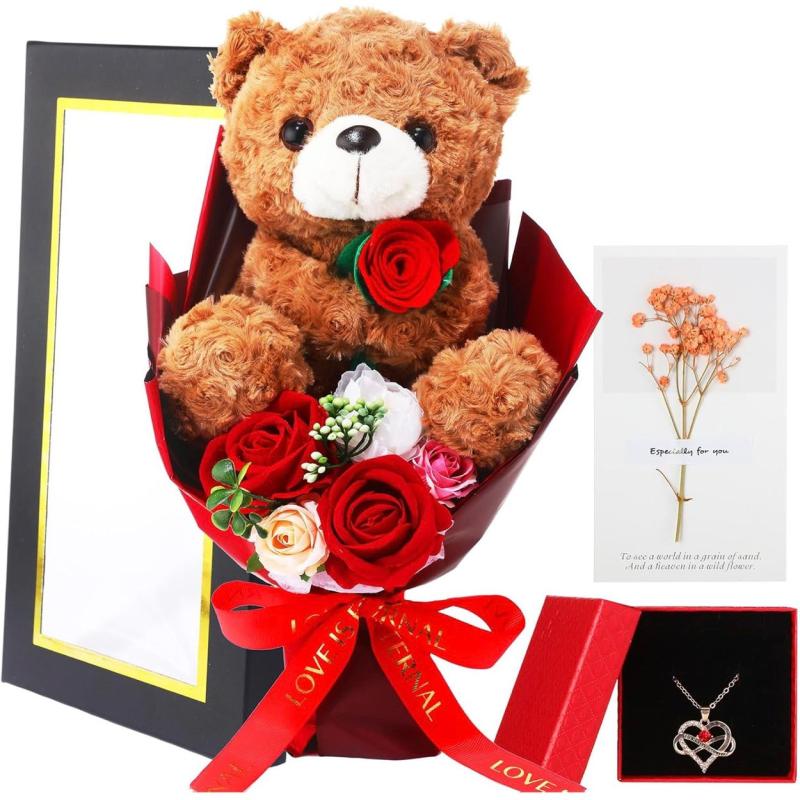 BEAR FLOWER BOUQUET WITH NECKLACE