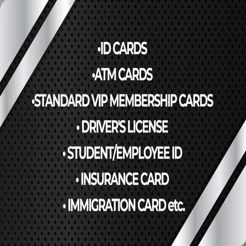 CUSTOMIZE •ID CARDS •ATM CARDS •STANDARD VIP MEMBERSHIP CARDS • DRIVER'S LICENSE • STUDENT/EMPLOYEE ID • INSURANCE CARD • IMMIGRATION CARD etc.