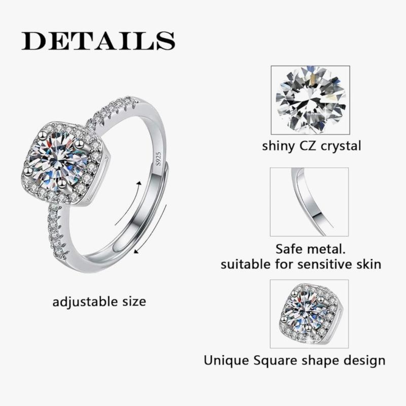 Adjustable Rings for Women Bridal Classic Silver Color for Promise, Wedding, Engagement & Marriage Ring Jewelry